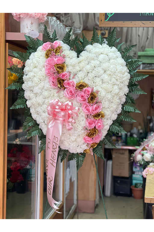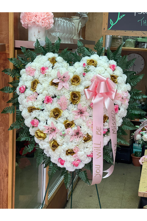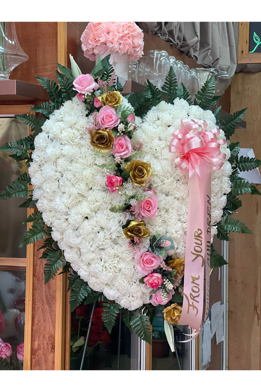 Eternal Love Open Heart Sympathy Arrangement | Artificial Carnation & Rose Funeral Flowers