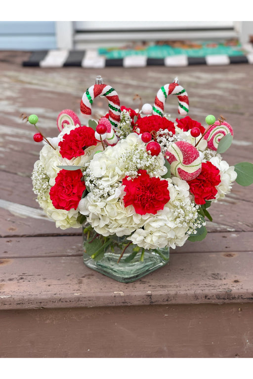 White & Red Christmas Floral Arrangement - Festive Elegance